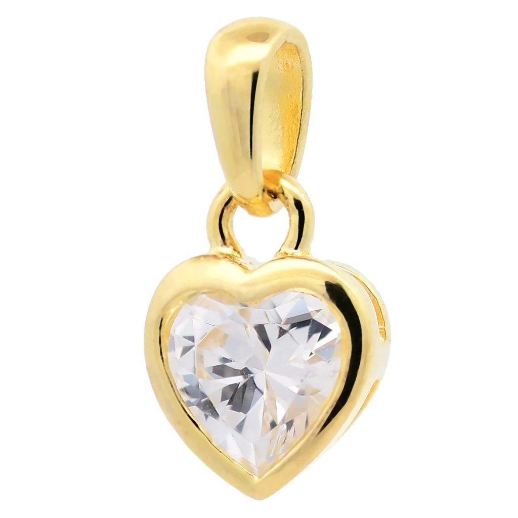 Tento zlatý přívěsek ve tvaru drobného srdce okouzlí svým jemným designem a třpytivým kamenem v srdcové části.