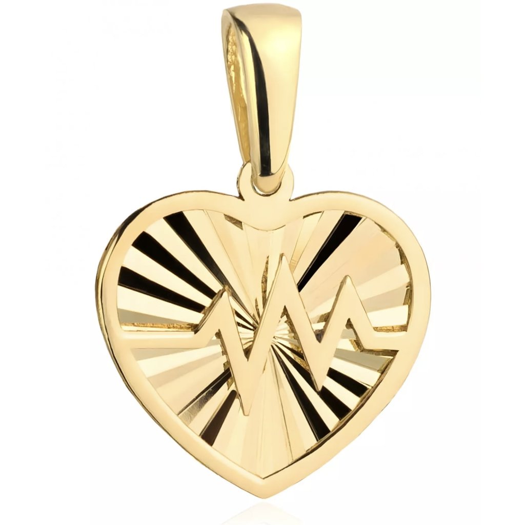 Stylový a osobní — tento zlatý přívěsek ve tvaru srdce s gravírovaným kardio tepem zaujme svojí výjimečností. Jemný gravírovaný motiv evokuje životní rytmus a emocionální spojení.