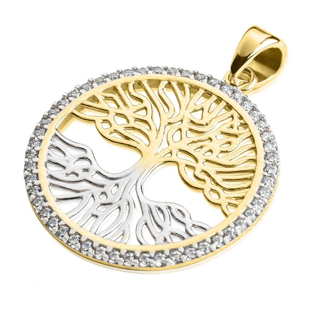 Tento přívěsek kombinuje teplou barvu žlutého zlata rámu s mrazivou hloubkou bílého zlata pro samotný motiv stromu.