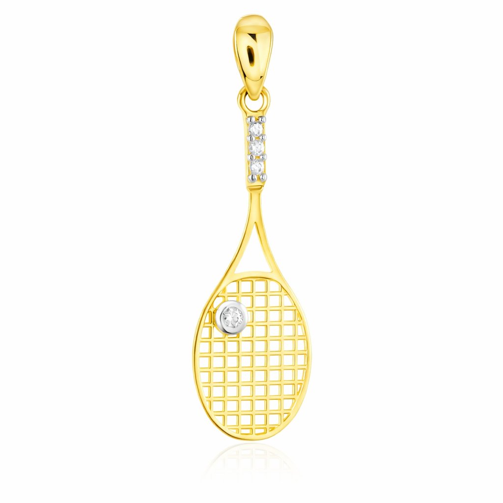 Zlatý přívěsek s motivem tenisové rakety se zirkony je originální šperk, který upoutá pozornost sportovním a zároveň elegantním designem.