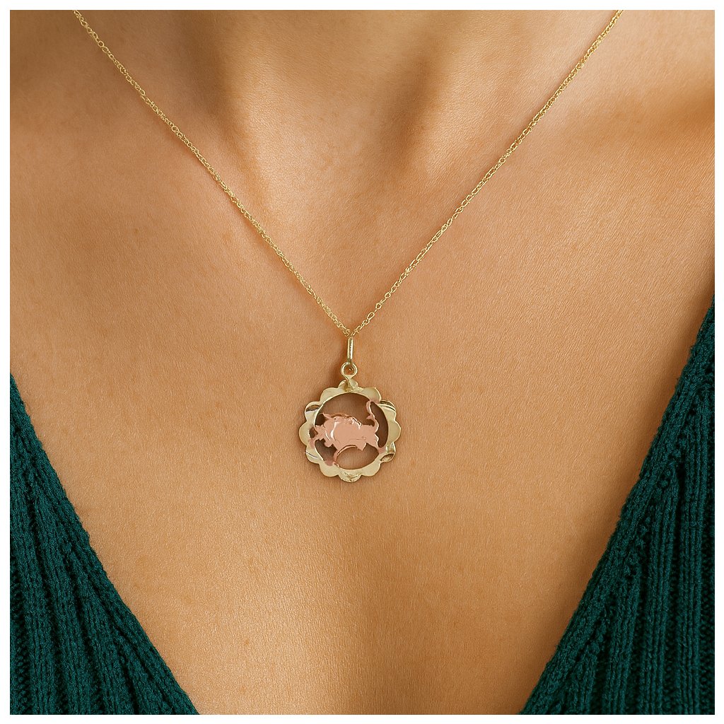 Tento kulatý zlatý přívěsek se znamením Býka spojuje jemnost astrologického motivu s elegantním designem. Přívěsek je precizně gravírován a je vyroben v kombinaci červeného a žlutého zlata pro zajímavý barevný kontrast. Kulatý tvar dodává šperku harmonii a nadčasovost, což umožňuje nosit jej samostatně nebo jako součást vrstveného stylu.