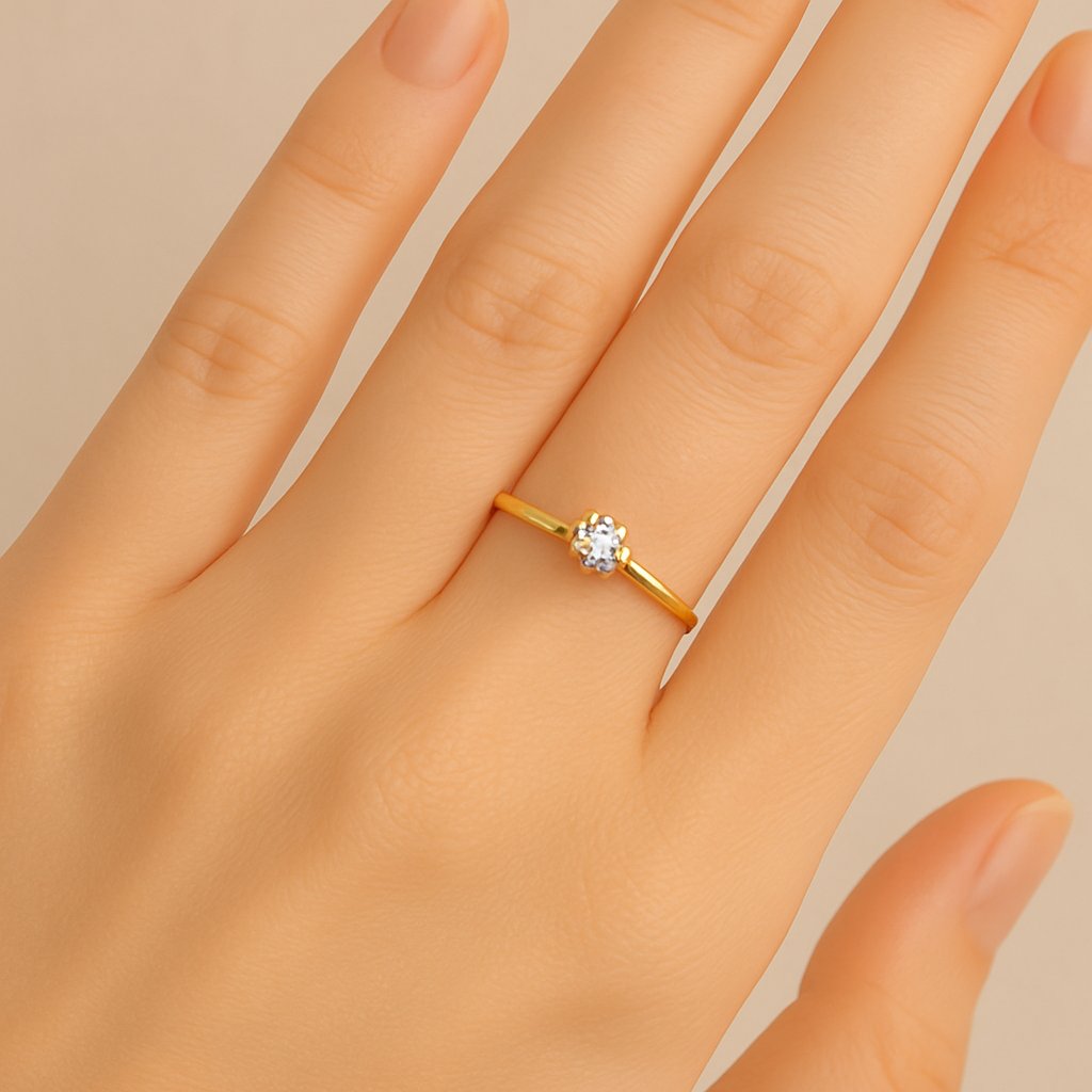 Jeho nadčasový design klade důraz na brilanci centrálního diamantu, který dodává prstenu sofistikovaný a zářivý vzhled. Prsten je navržen s ohledem na jemnost a eleganci, což ho činí skvělou volbou pro významné životní události.