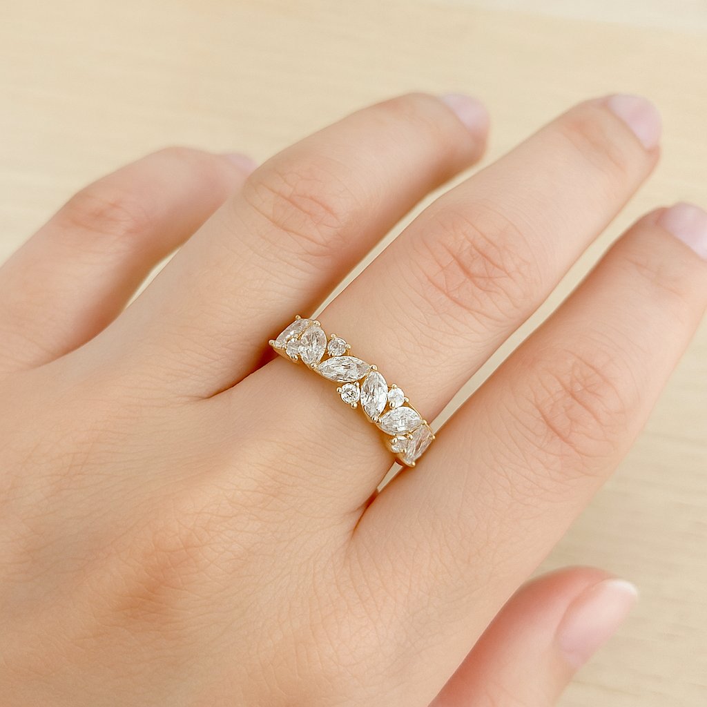 Prsten je vyroben ze 14karátového zlata (ryzost 585/1000), které zaručuje vysokou odolnost a krásný zlatý odstín. Laboratorní diamanty mají stejné optické i fyzikální vlastnosti jako přírodní diamanty, ale jejich výroba je šetrnější k přírodě, což z tohoto šperku činí ideální volbu pro moderní ženy, které dbají na etické hodnoty.