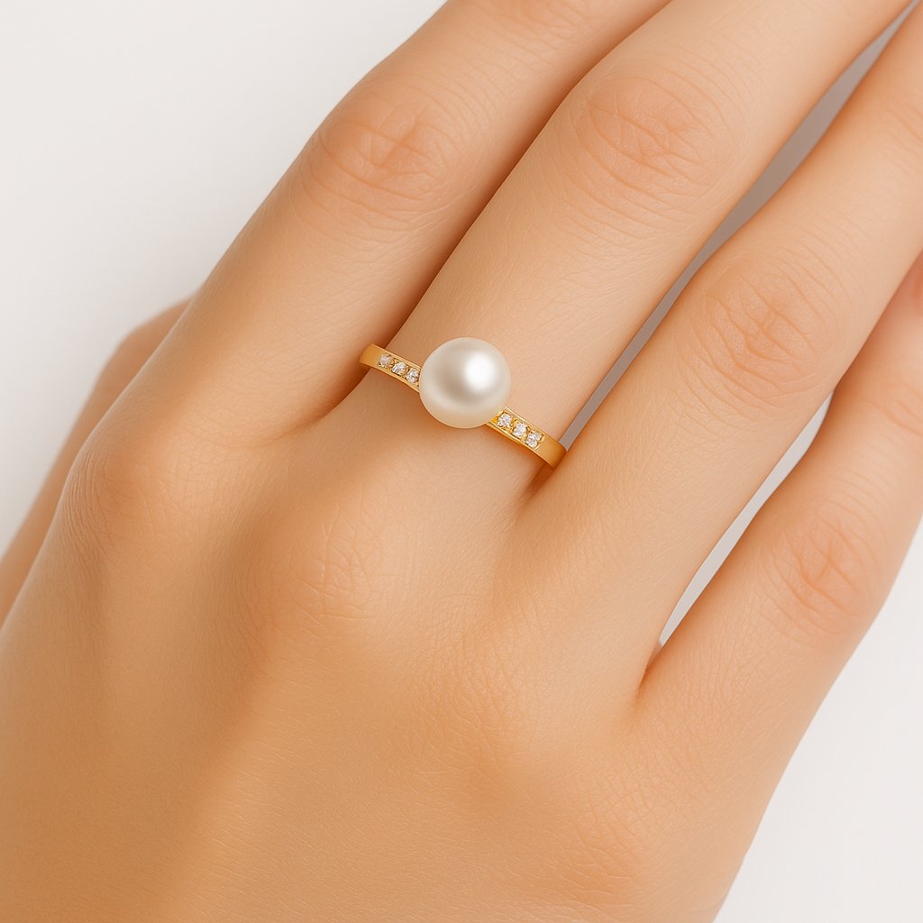 Tento zlatý prsten zdobený přírodní perlou a třpytivými zirkony představuje dokonalou kombinaci elegance a sofistikovanosti. Jemná perla uprostřed je zvýrazněna precizně zasazenými zirkony, které dodávají šperku jemný lesk. Je to ideální doplněk pro ženy, které dávají přednost klasickému a přesto modernímu designu.