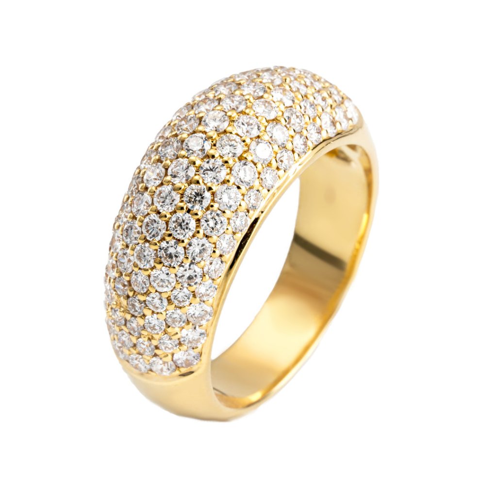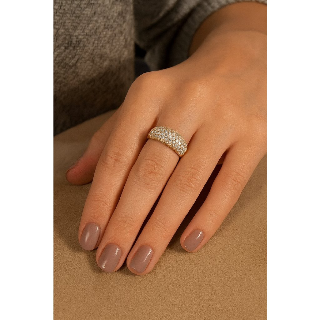 Elegantní zlatý prsten zdobený několika zářivými kameny, které mu dodávají jedinečný lesk a noblesní vzhled. Perfektní volba pro speciální příležitosti i každodenní nošení.