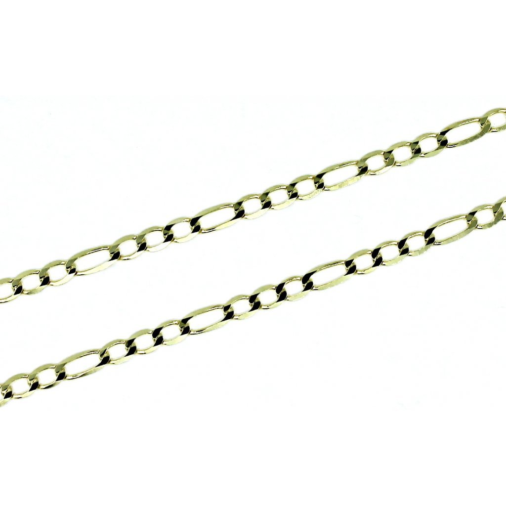 Jemnější řetízek je vyroben ze žlutého 14 karátového zlata a je tvořen oválnými očky, které se v pravidelných intervalech střídají 3+1.Použité zapínání je na pérový kroužek.