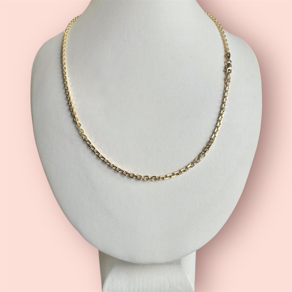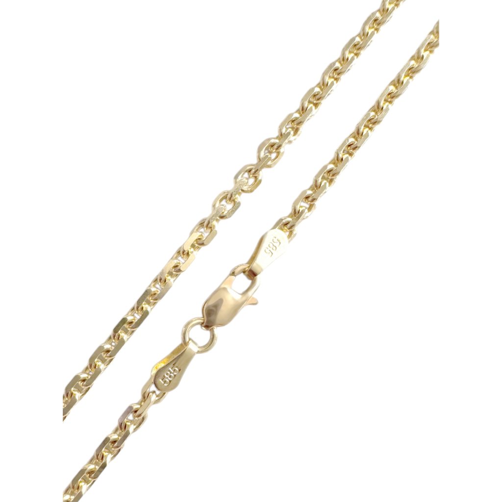 Tento zlatý řetízek typu Anker je robustnější a má broušený povrch, který zajišťuje výrazný lesk a estetický vzhled. Jeho silná konstrukce přidává na trvanlivosti a odolnosti, což z něj činí šperk vhodný nejen pro každodenní nošení, ale i pro speciální příležitosti.