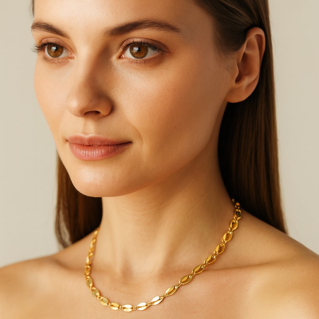 Řetízek je tvořen elegantními články ve tvaru kávových zrn, které jsou doplněny jemným gravírováním. Tento design dodává šperku sofistikovaný a moderní vzhled. Díky svému rafinovanému provedení lze nosit samostatně nebo doplnit o přívěsek, což umožňuje snadné přizpůsobení vašemu stylu.
