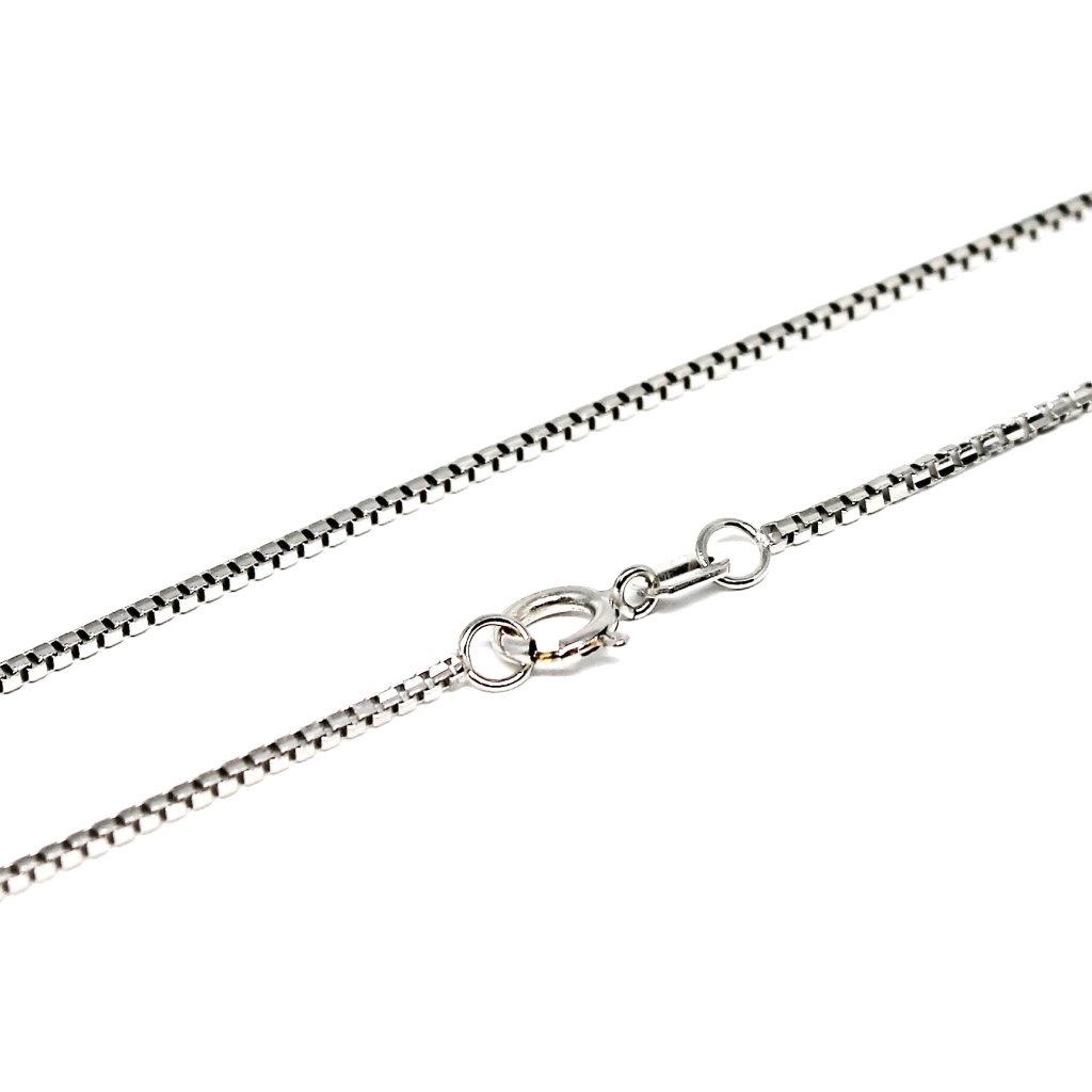 Oblíbený řetízek pro ženy i muže z bílého zlata 585/1000, typ Venezia má skvělou pevnost. Vzor řetízku tvoří jemné kostičky s kosenou hranou a povrchovou úpravou rhodium, které dodává šperku vysoký lesk/zamezuje tmavnutí/.Vhodný pro zavěšení přívěsu ale i samostatné nošení. Řetízek je pro svůj tvar a vzhled jedním z nejoblíbenějších .Koncové zapínání je s pérovým kroužkem.