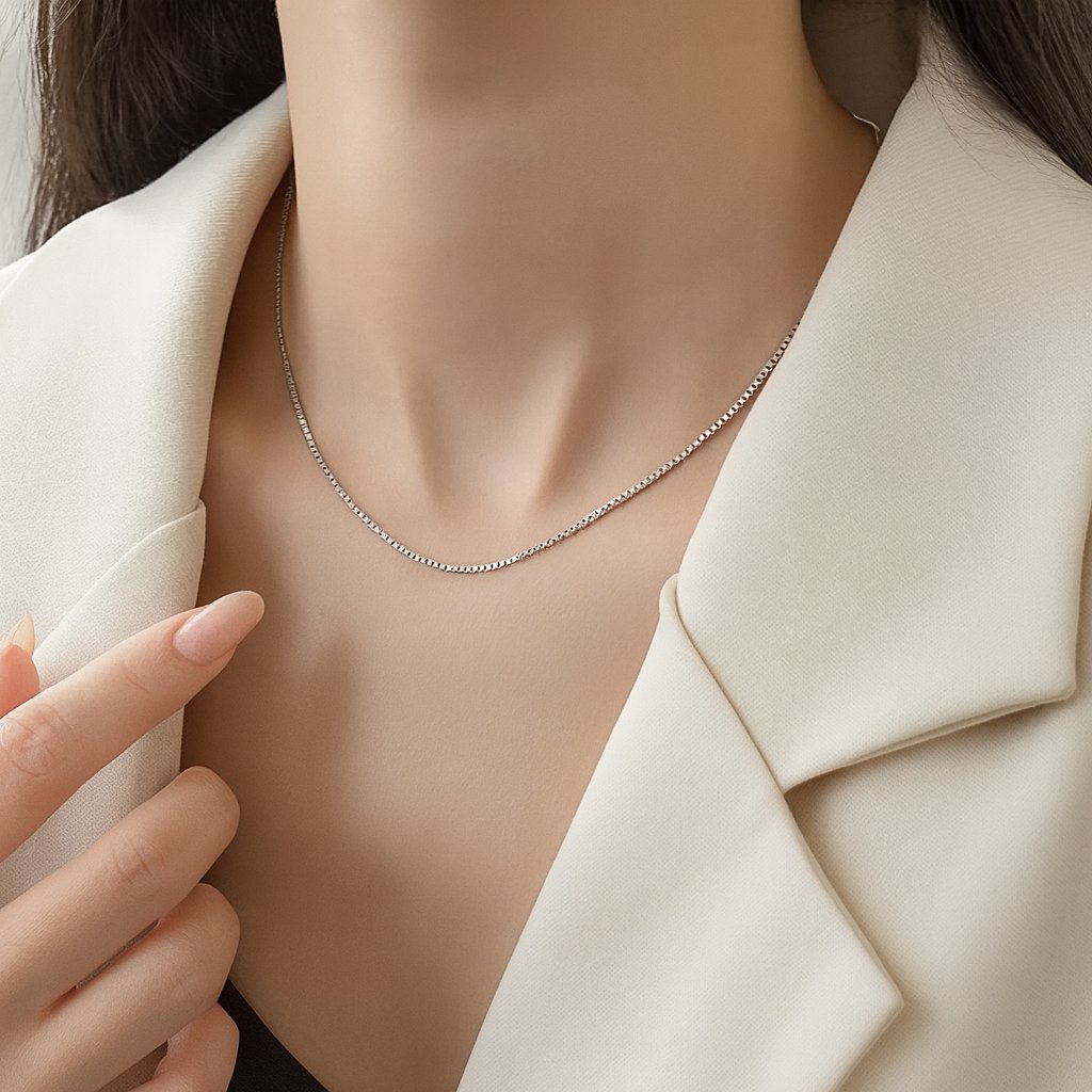 Řetízek volně spadá kolem krku a působí stylově jak samostatně, tak v kombinaci s přívěskem nebo vrstveným stylem.
